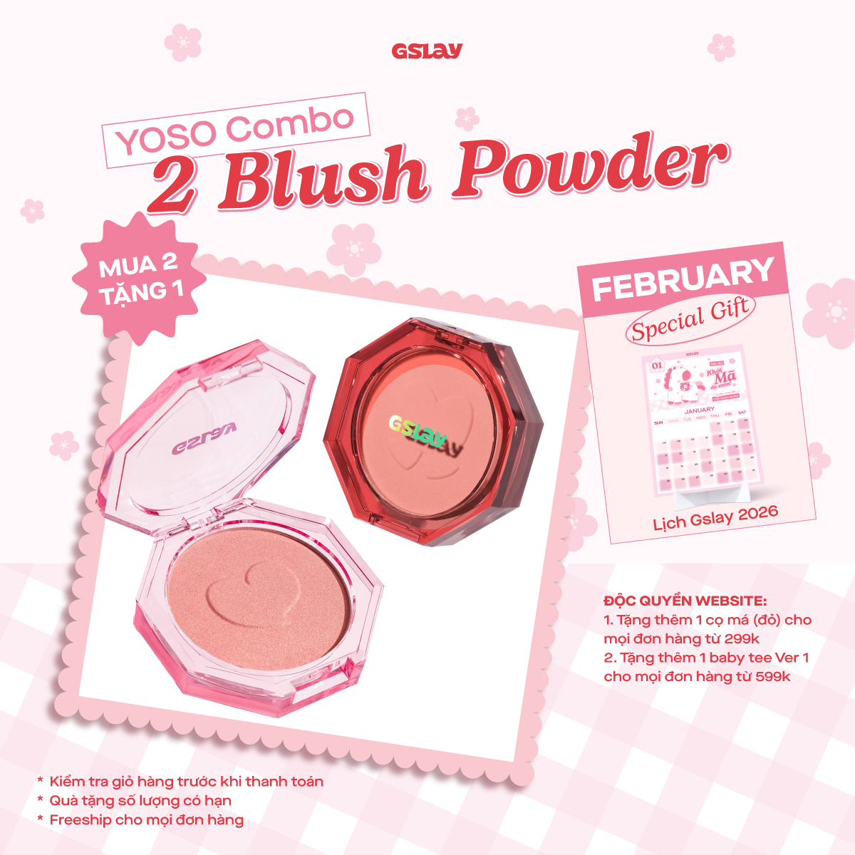 Combo 02 Phấn má hồng thuần chay GSLAY YOSO Blush Powder